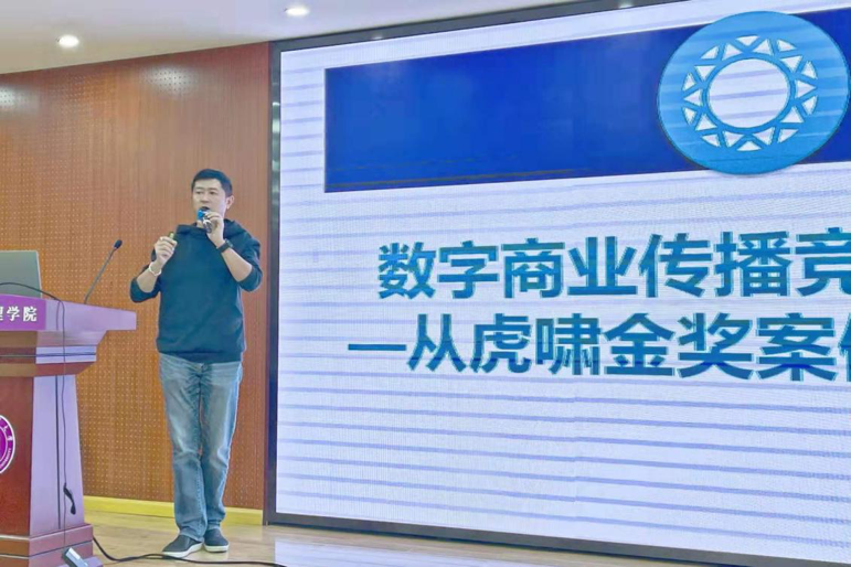 【通讯员 郭佳、胡程立】20201210日,虎啸传媒CEO、《数字营销》杂志主编袁俊先生做客狮子山讲坛,为88看球apk 广告系师生带来一场别开生面的讲座。讲座的主题为《数字商业传播竞争力解析——从虎啸金奖案例视角说起》,由广告与传播学系副主任胡程立副教授主持。