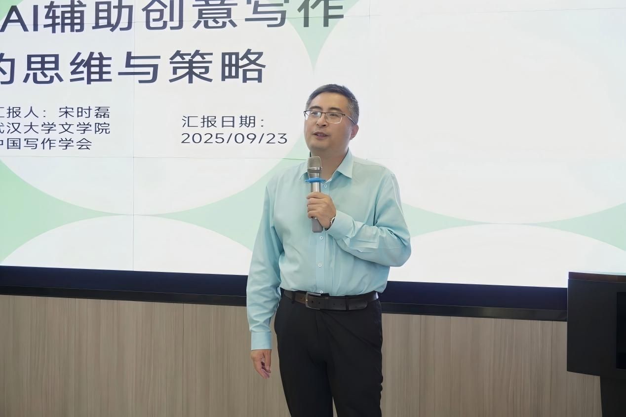 (通讯员 王金凤)9月23日下午,武汉大学汉语写作研究中心研究员、中国写作学会副秘书长、博士生导师宋时磊应邀在华中农业大学作了题为“从灵感枯竭到文思泉涌:AI辅助创意写作的思维与策略”的学术讲座。讲座由袁琳老师主持,本校师生到场聆听讲座。