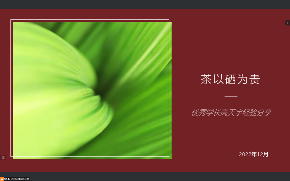 此次经验分享会由研究生高天宇主讲,高天宇主持的“茶以硒为贵——恩施鹤峰富硒有机茶立体茶业”项目曾获88看球app下载