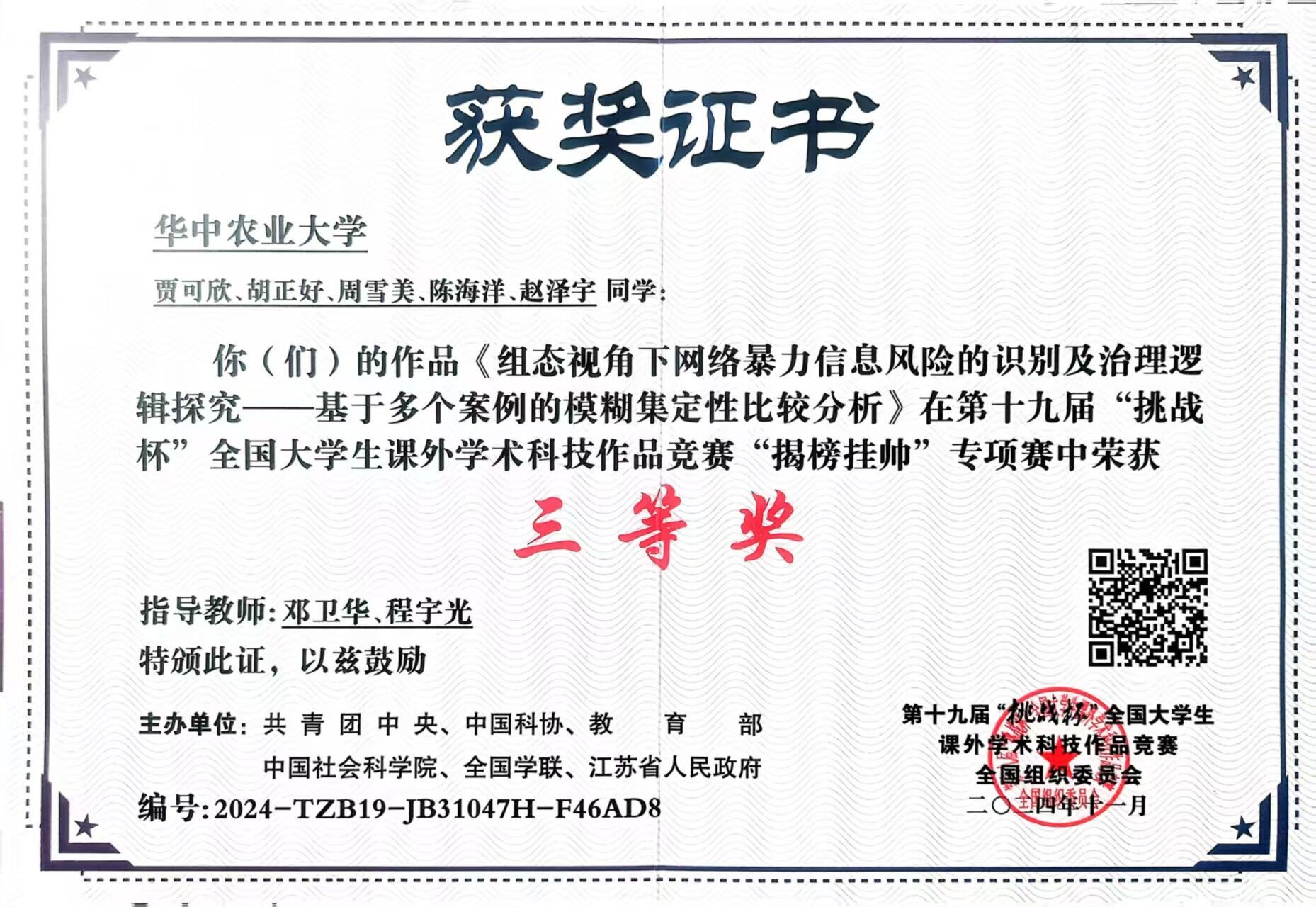 地址:湖北省武汉市洪山区狮子山街一号华中农业大学人文社科楼