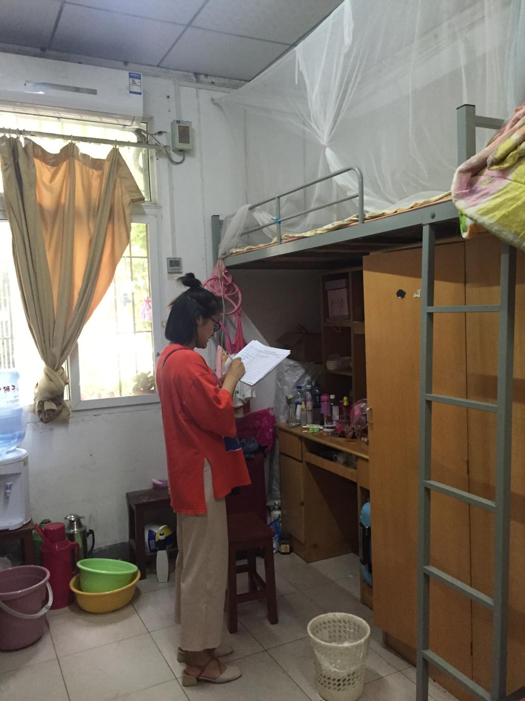 在安全检查过程中,工作人员持证上岗,分别对研究生宿舍床铺、桌面、书架、插座、卫生间等区域进行了细致检查。同学们积极配合,协助检查人员完成了宿舍的安全检查工作。