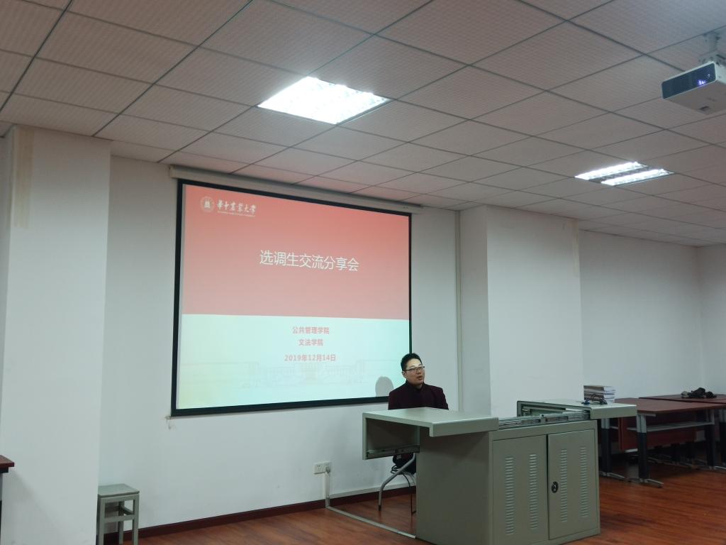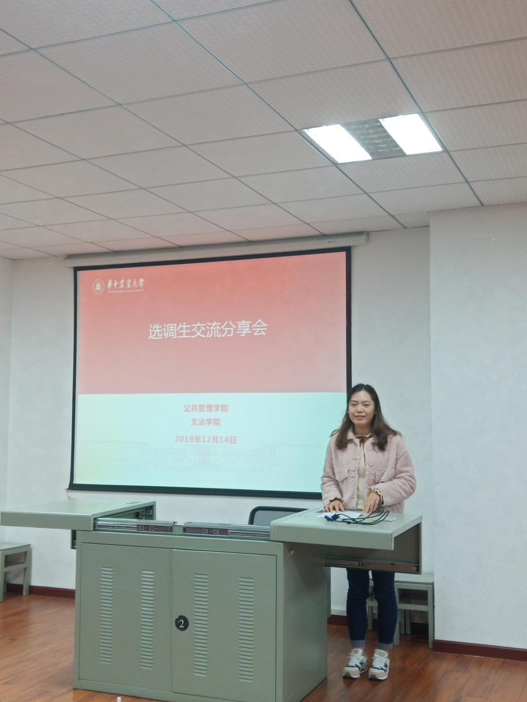 共同邀请了6位选调生校友在人文楼M221开展了交流分享会,会议由辅导员向克蜜主持。各位嘉宾结合亲身经历,详细介绍了选调生的报名和备考,生动讲述了选调生工作中的体会和收获,并给予在座同学中肯的建议和期望。