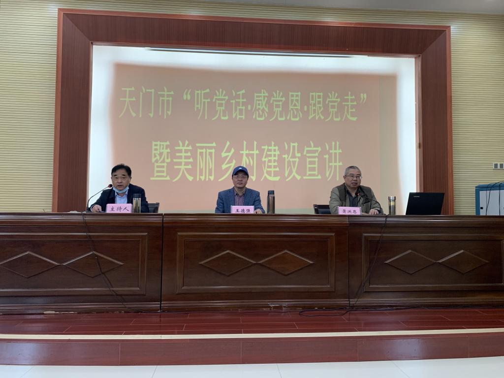 副院长王德强、社会学系教授萧洪恩等前往天门市开展乡村振兴荆楚行活动。萧洪恩教授做了主题为“听党话、感党恩、跟党走”的讲座,讲座由天门市农业农村局局长徐毕敬主持,天门市乡镇、村级干部150余人参加学习。