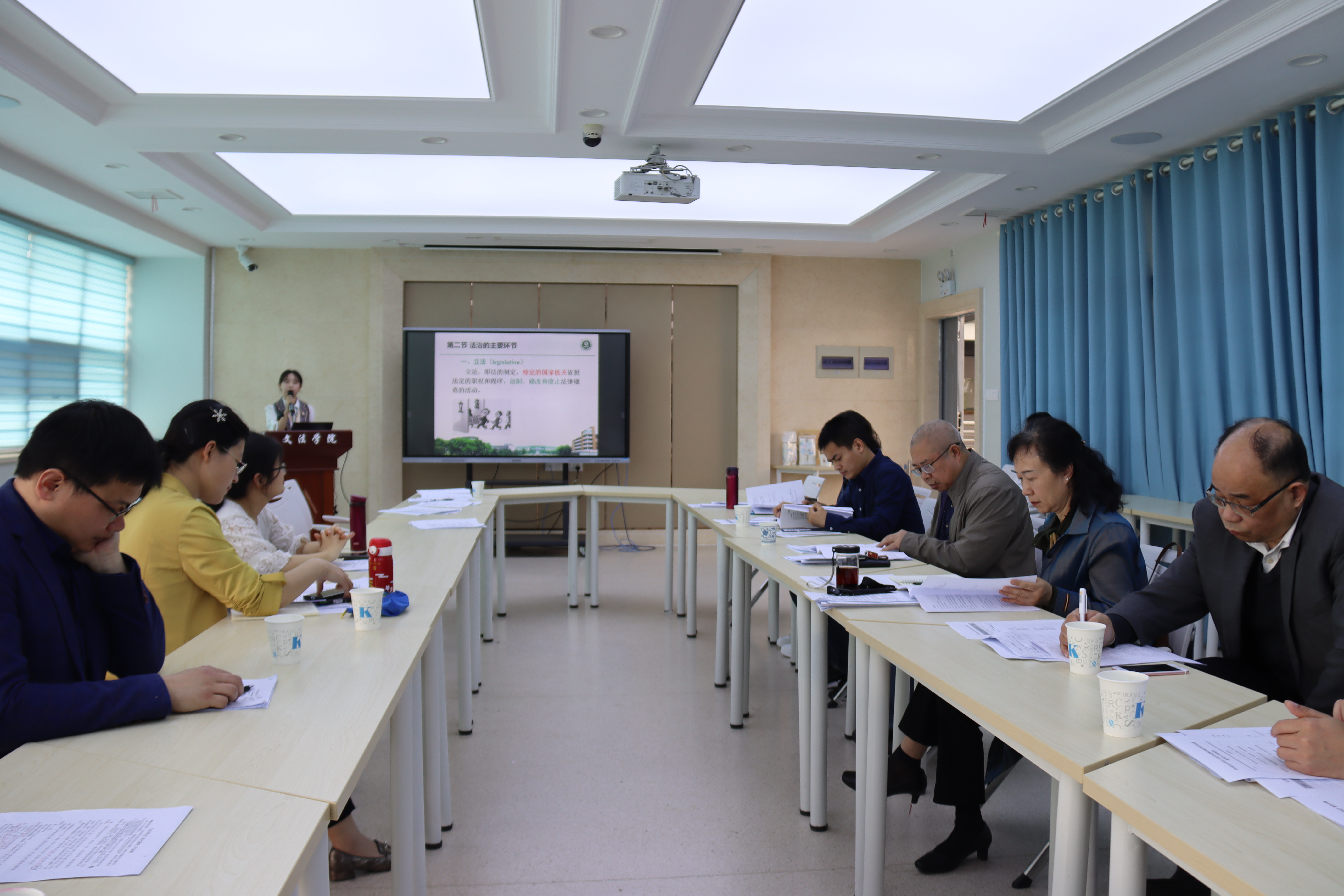 活动开始,国学部潘纯、广告学系崔磊、社会工作系王翠琴、法学系张文斐等四位青年教师分别以各自教授的课程中的某一部分为案例,进行了20分钟的课堂教学展示。
