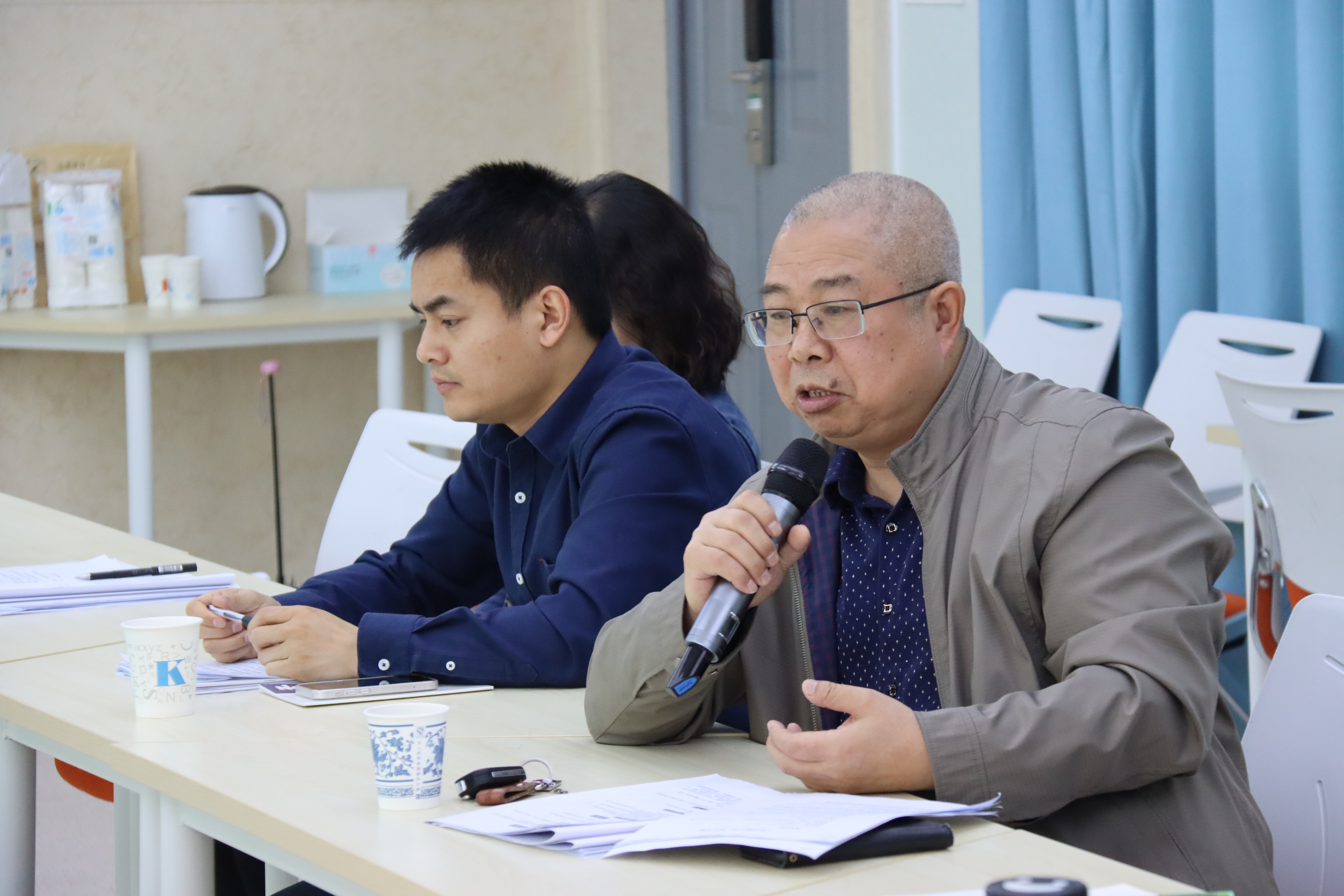 老师江凯和杨瑞也表达了各自建议。萧洪恩老师在肯定优点的同时,也指出老师们在语言表达与文字总结的细节上还需要下功夫,将课程思政要自然融入,要通过细节引导学生,给学生一种积极向上的力量。