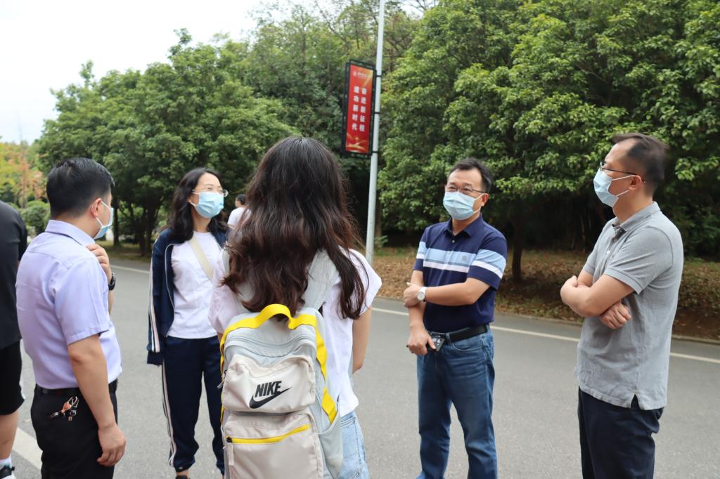 党委副书记周治瑜一行人也来到迎新点,看望迎新志愿者,也看望刚刚来到狮山下的新同学。文法人竭尽全力,希望用自身的热情打消新生第一次离开家长、离开家乡,来到陌生环境的不安,鼓励他们勇敢迈出人生新时期的第一步。