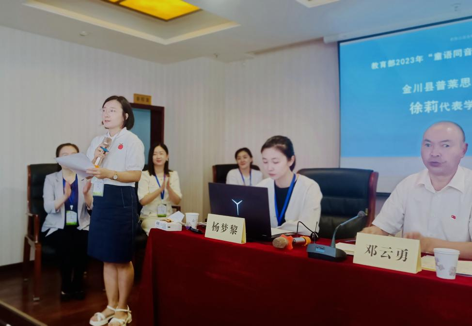 金川县普莱斯特幼儿园教师徐莉代表全体学员发言,倡议学员们努力克服困难,并郑重承诺在培训期间认真学习,积极参加课堂互动,严守课堂纪律,努力提高专业水平。