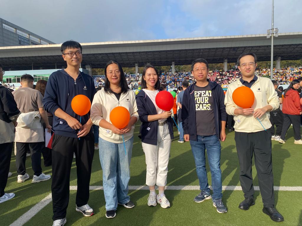 看!开幕式上,老师们手拿气球,昂头走向前方,自信与活力由内而发,每一声洪亮的口号都展现出文法教师积极向上的精气神,他们从88看球apk 办公室出发,经过秋叶满天,抵达运动场,整齐划一的步伐正是文法教师团结一致的象征!赛道上,88看球apk 的老师们步伐矫健,眼神坚定。他们奋力奔跑,每一步都充满了力量,仿佛在诉说着他们对生活的热爱和对挑战的无畏。汗水在阳光下闪烁,那是他们拼搏的见证。他们不仅仅是知识的传播者,更是运动场上的勇士,用行动诠释着坚持与奋斗的意义。而此刻,他们用活力感染众人。他们的参与,为运动会增添了一抹别样的色彩。