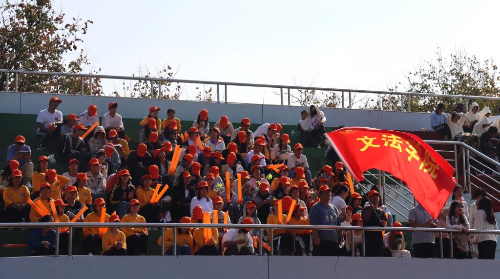 全体师生热情高涨,踊跃参与,携手共绘了一幅波澜壮阔、团结奋进的热血画卷。而后勤保障处和看台也是热闹非凡,大家凝心聚力,共同谱写着属于文法的辉煌篇章。