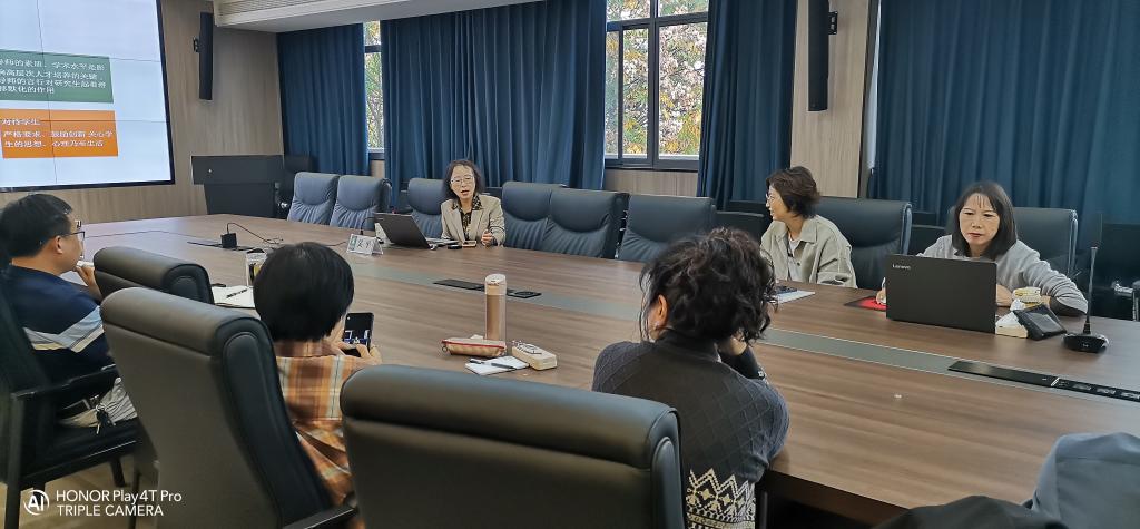 吴平教授生动又深刻的分享激发了与会老师的交流热情。余霞、胡程立老师对“亦师亦友,共同成长”的师生相处模式深有体会,希望努力成为学生模仿的对象。吴老师“既能简单,又善坚持“,“效率背后的信念感” 让聂祎、杨丹、彭垒、乔同舟等深受触动,坚持微小的行动,知易行难,更见可贵。交流中,赵珞琳、夏琳、李昕烨等几位新晋导师先后就“即将作为新手第一年带研究生,有什么需要注意的地方?”“对研究生一年级学生,应该提出哪些素养要求?”“学生读书会书目该如何选择“等困惑,向吴老师提问请教。吴平教授对上述疑问一一解答,同时强调作为老师在教学以及与学生相处过程中保持良好心态的重要性。鼓励老师们辩证看待问题,要去努力寻找问题中的平衡点。