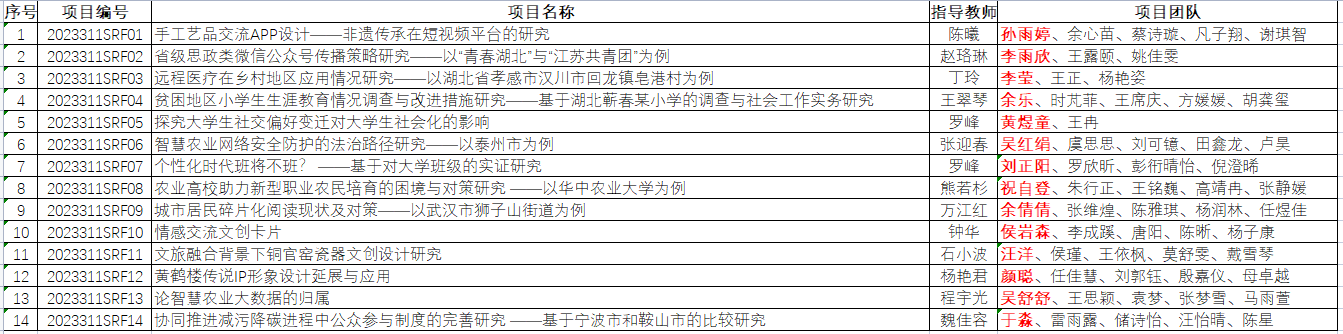 为鼓励与支持本科生参与科学研究、社会调研等实践创新活动,培养学生的创新精神、创业意识和创新创业能力,全面提升学生科学素质和人文素养,经学生申请、专家评审,拟对“手工艺品交流APP设计——非遗传承在短视频平台的研究”等14个项目立项为88看球apk 2023年大学生科技创新基金(SRF)项目。现予以通知。
