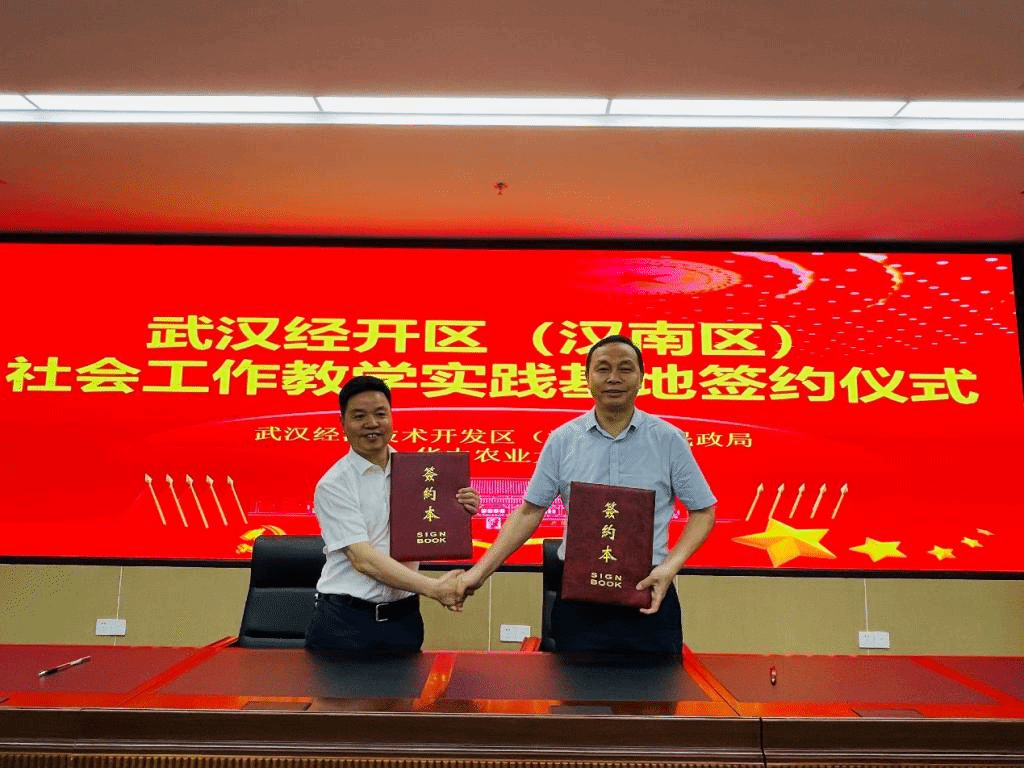 与武汉市经济开发区(汉南区)民政局局长王世柱签订了合作协议书,开启了双方共建实习基地、搭建专业社会工作服务平台的序幕。