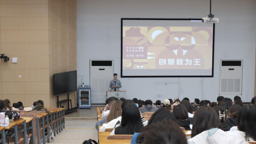 (文肖亚楠 图夏雨薇)4月14日晚,2022年度艺术设计专业技能竞赛宣讲会于三教S1报告厅举行。武汉当夏时光文化创意有限公司创始人兼总经理张豪先生、华中农业大学资产经营与后勤保障部商贸服务中心校园纪念品店店长刘娜女士、艺术设计系教师夏琳、邓玉璋、石小波、梁骁、陈曦以及全体学生参加此次宣讲会,宣讲会由杨艳君老师主持。