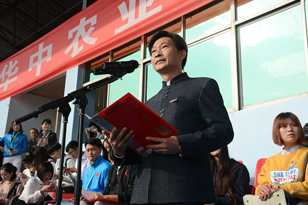 庄严的奏唱国歌后,我校副校长致开幕词并宣布华中农业大学第五十六届运动会正式开幕。