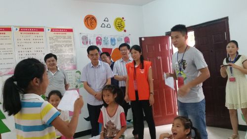 在杨飞的陪同下,唐峻一行考察了王家河社区和彭岗村两个服务点内的多功能活动室、健身康复室、书画室、四点半学校、阅览室及心理咨询室等场所。唐峻仔细询问活动开展情况、留守儿童的身心状况、家长的反应等,并同小朋友们“拉家常”。