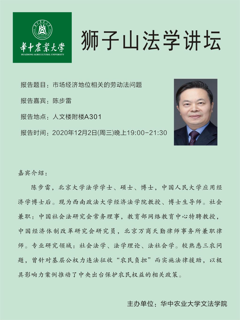 地址:湖北省武汉市洪山区狮子山街一号华中农业大学人文社科楼