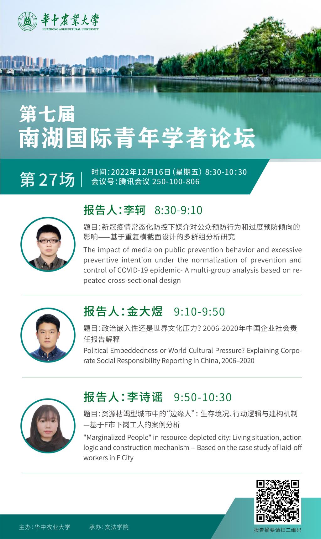 地址:湖北省武汉市洪山区狮子山街一号华中农业大学人文社科楼