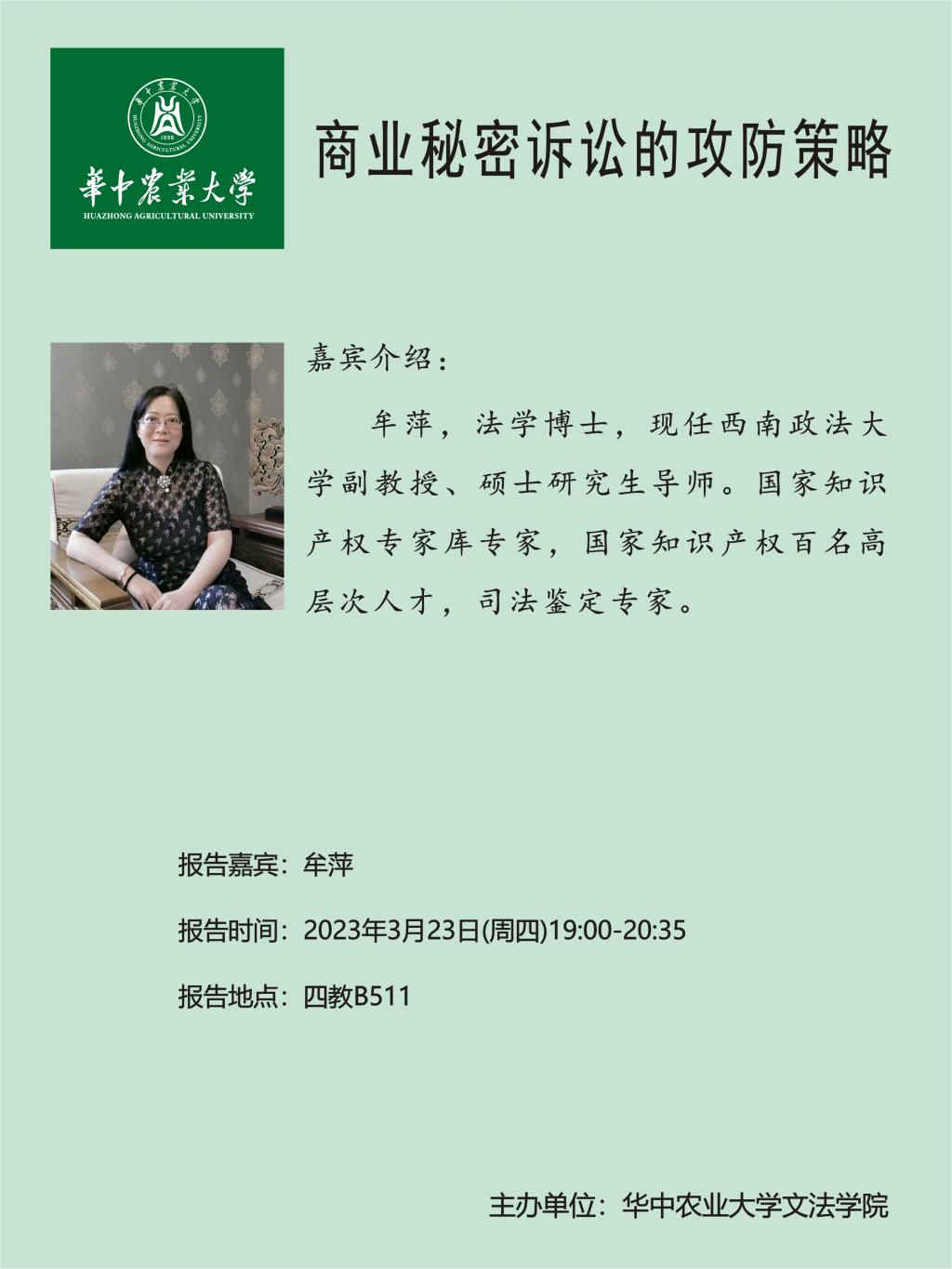 地址:湖北省武汉市洪山区狮子山街一号华中农业大学人文社科楼