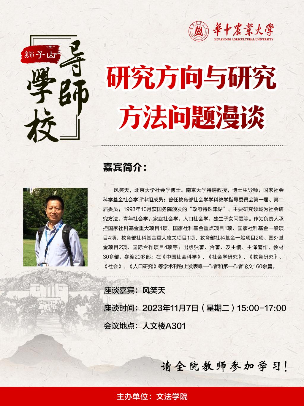 地址:湖北省武汉市洪山区狮子山街一号华中农业大学人文社科楼