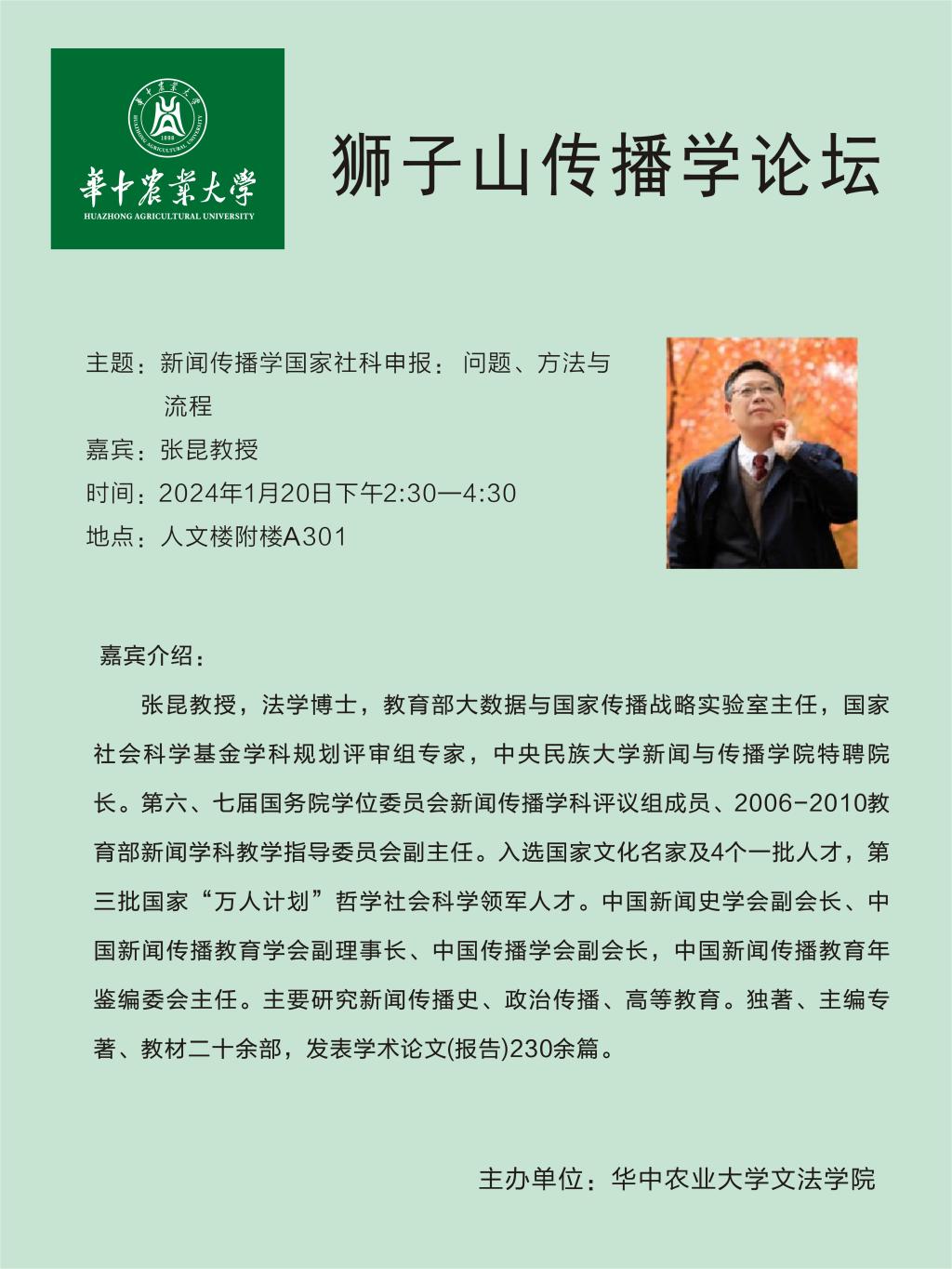 地址:湖北省武汉市洪山区狮子山街一号华中农业大学人文社科楼