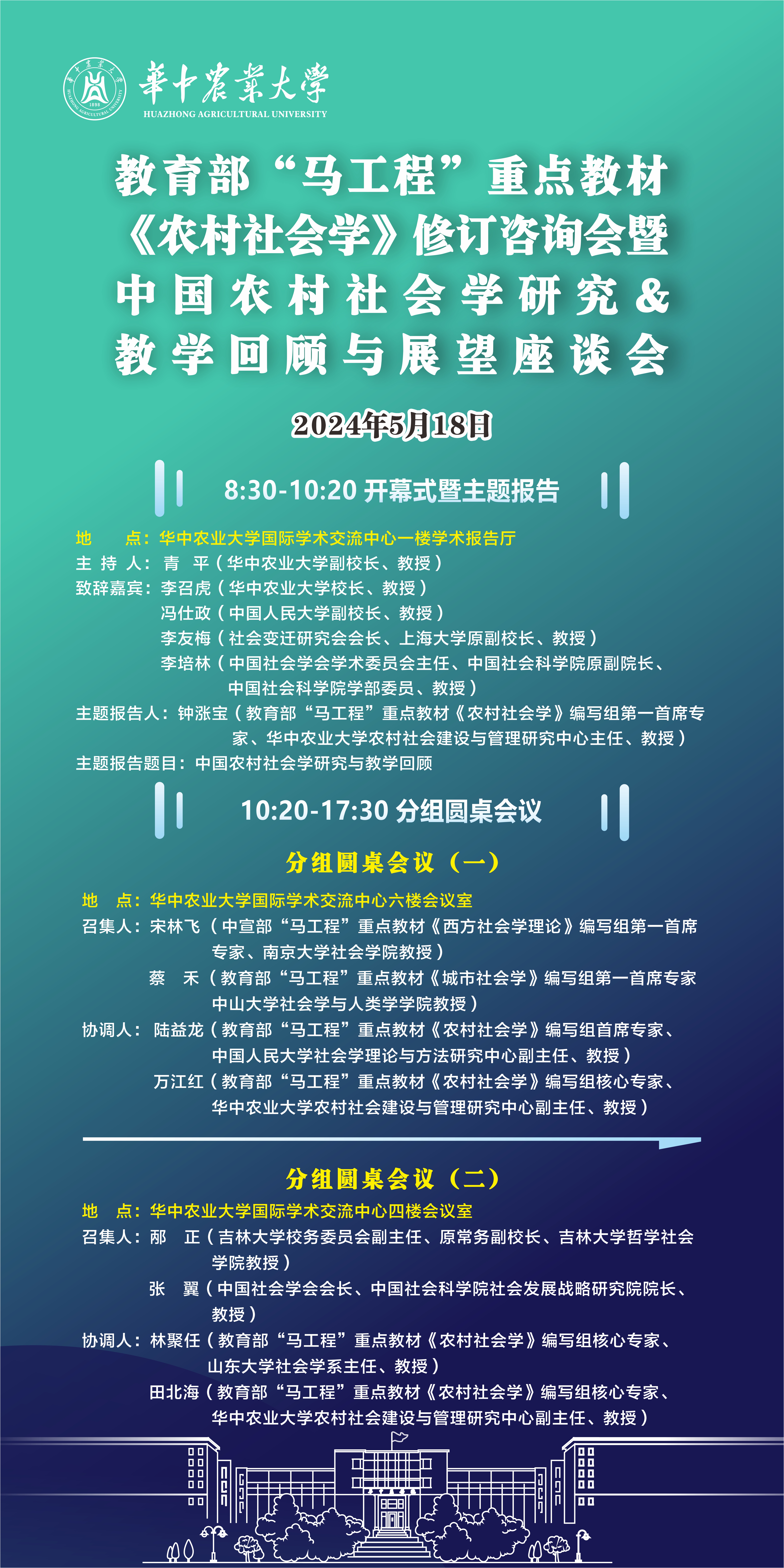 地址:湖北省武汉市洪山区狮子山街一号华中农业大学人文社科楼