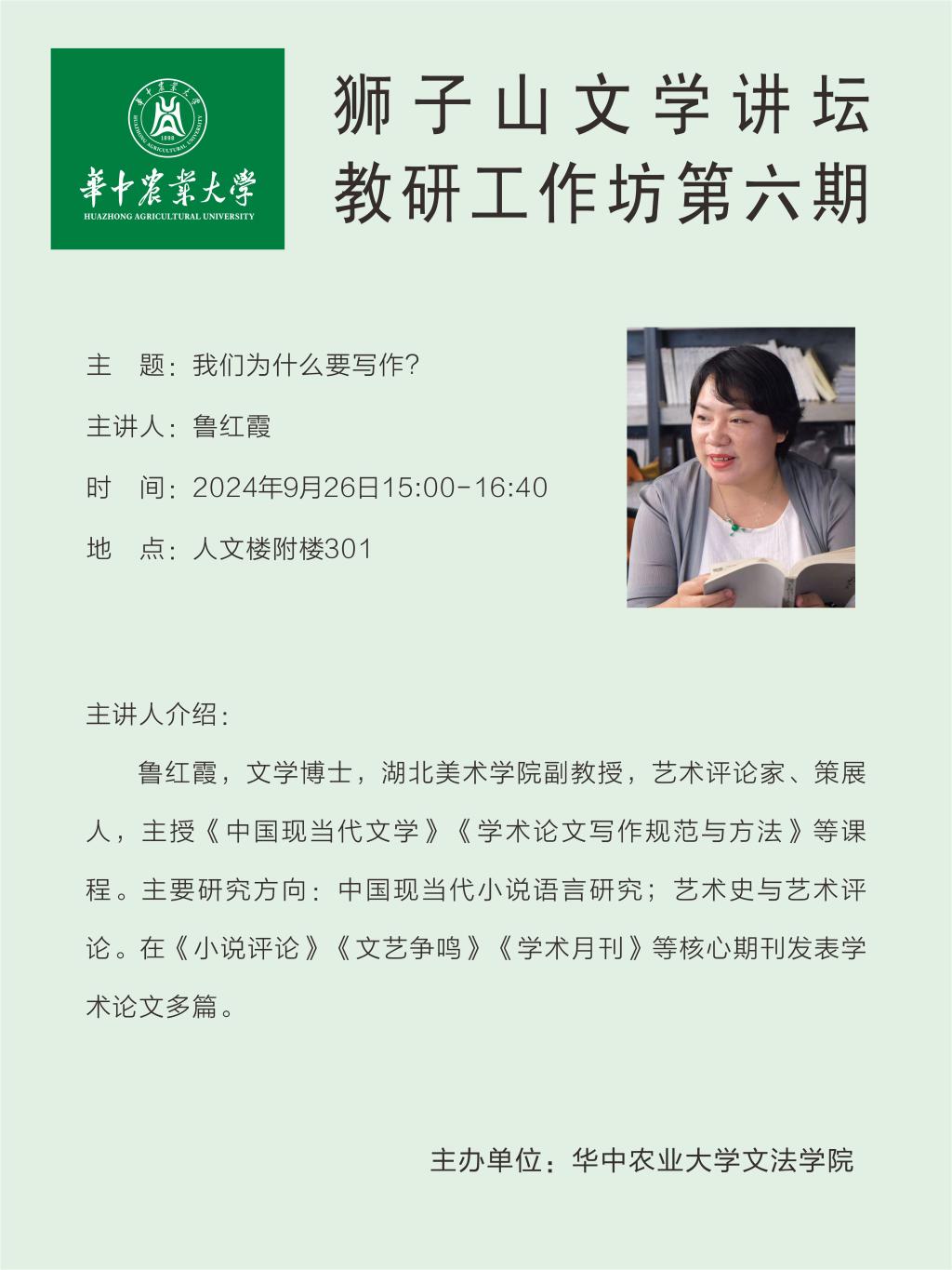 地址:湖北省武汉市洪山区狮子山街一号华中农业大学人文社科楼