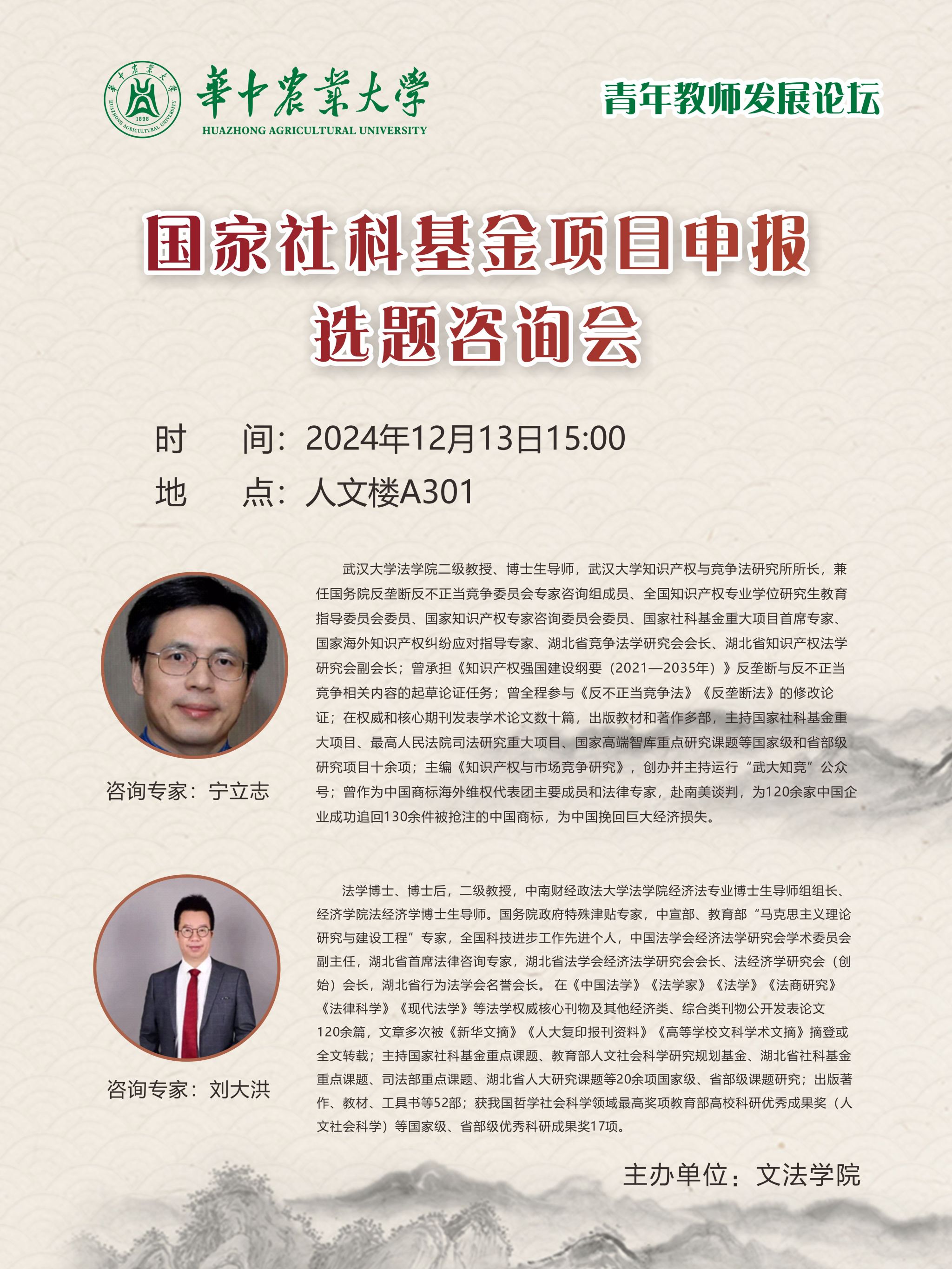 地址:湖北省武汉市洪山区狮子山街一号华中农业大学人文社科楼