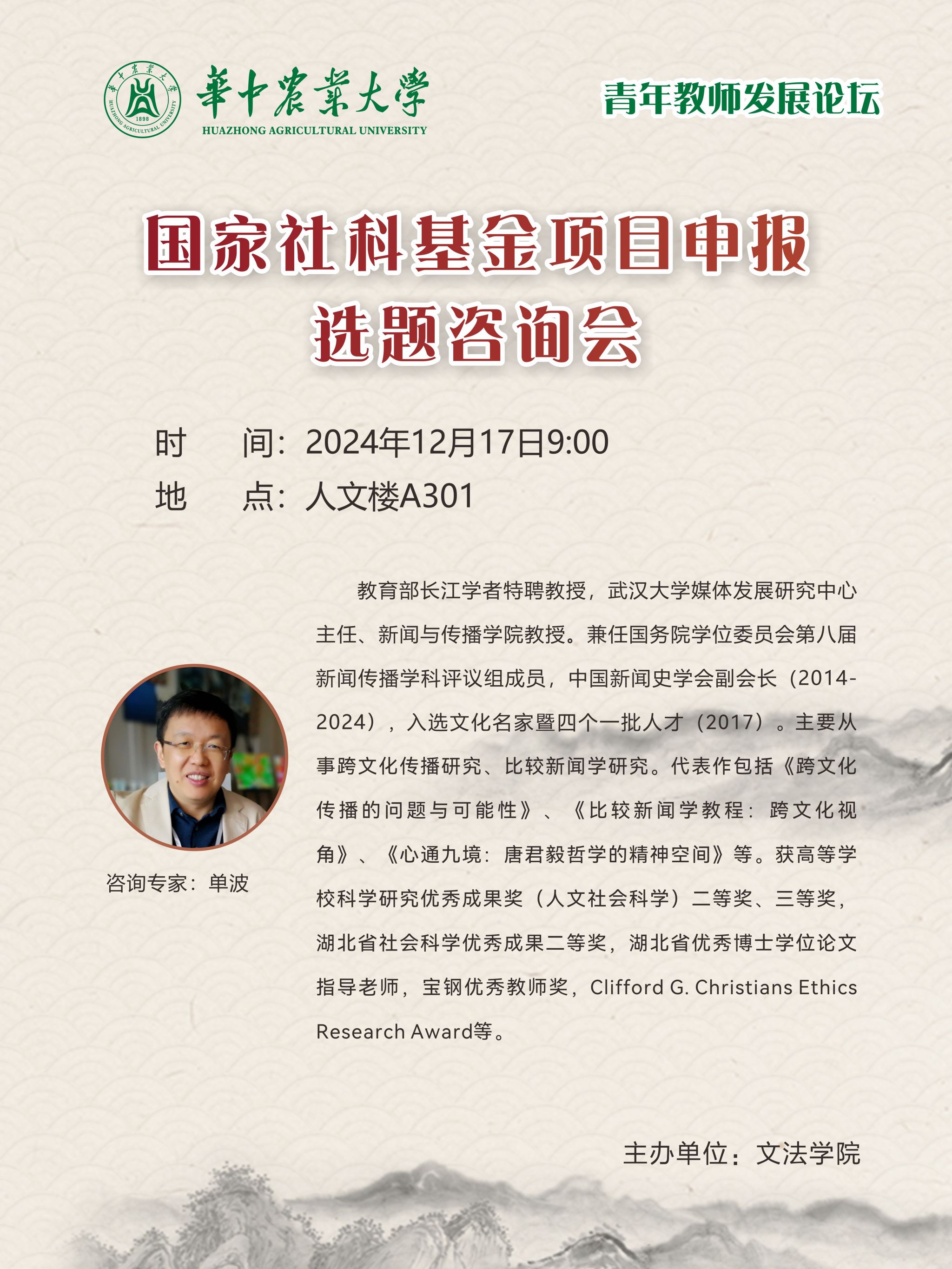 地址:湖北省武汉市洪山区狮子山街一号华中农业大学人文社科楼