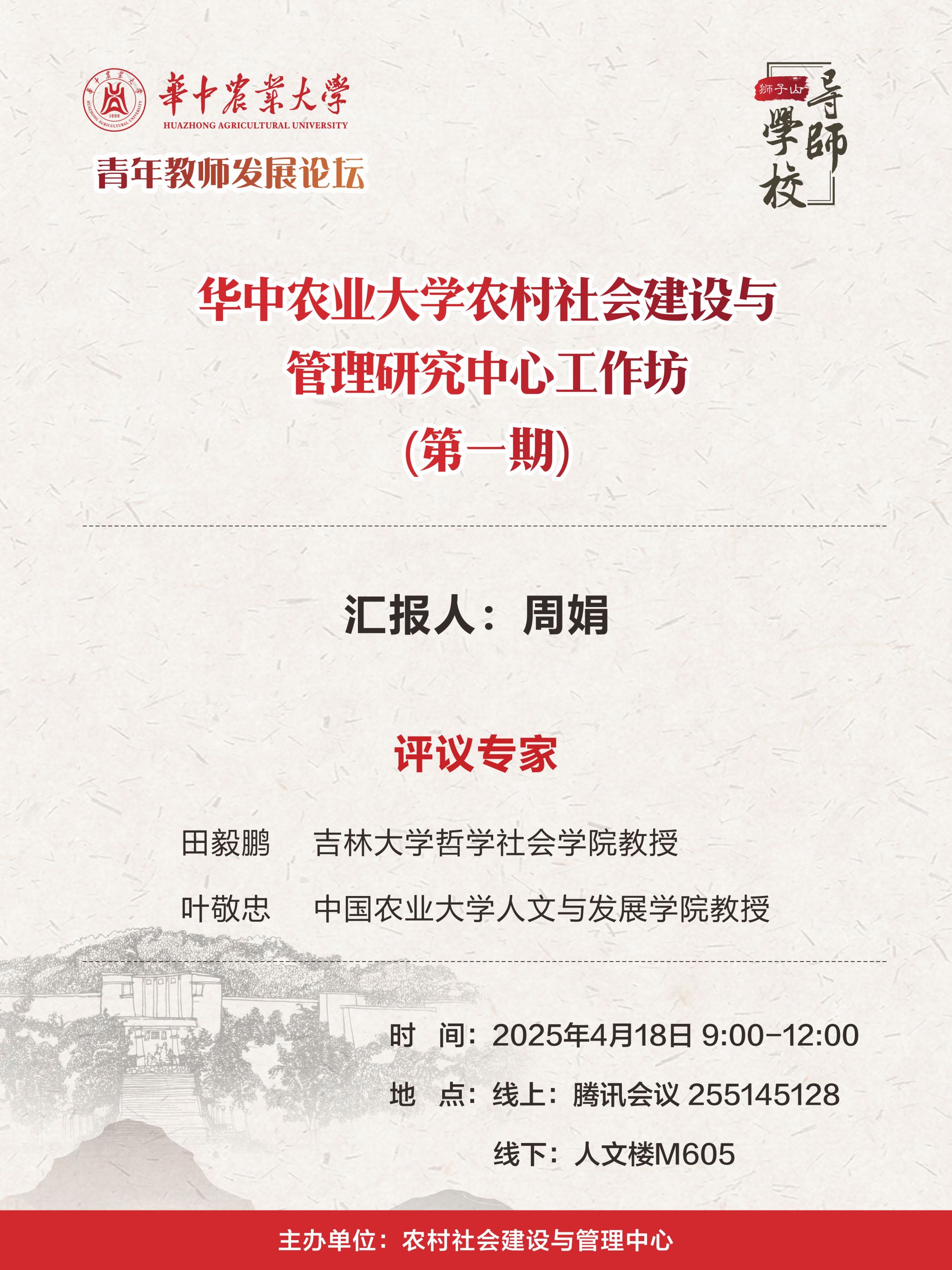 地址:湖北省武汉市洪山区狮子山街一号华中农业大学人文社科楼
