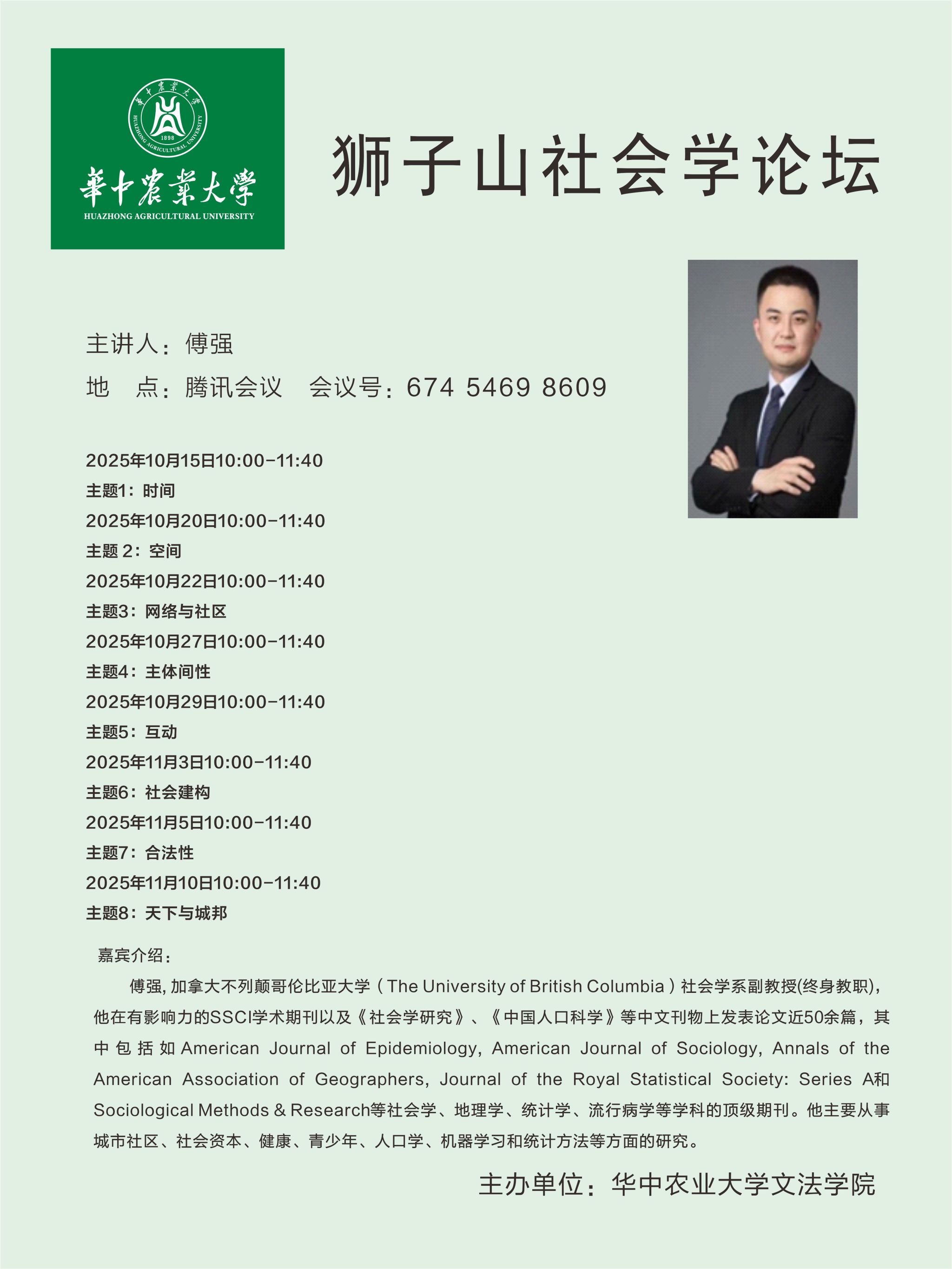 地址:湖北省武汉市洪山区狮子山街一号华中农业大学人文社科楼