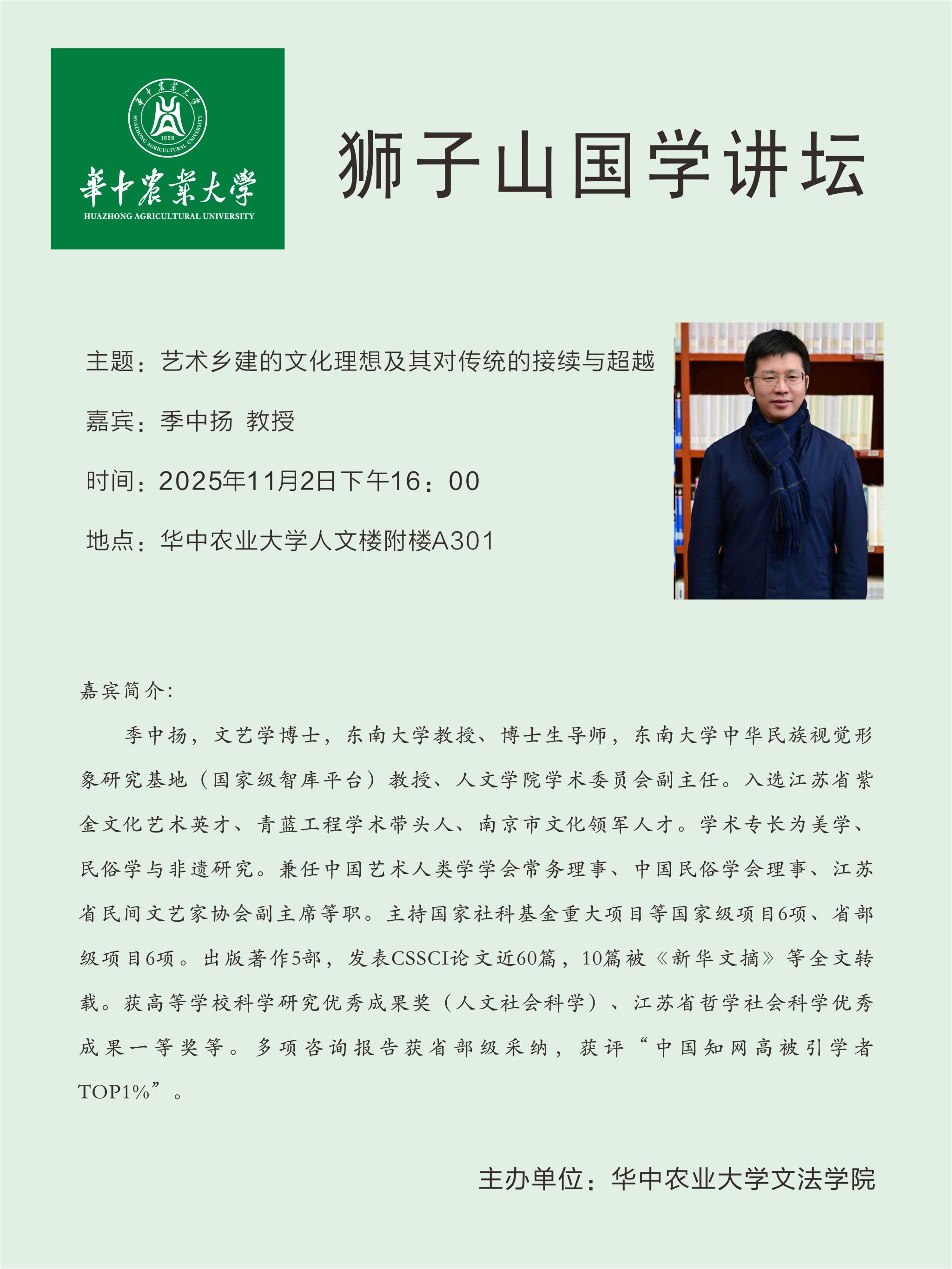 地址:湖北省武汉市洪山区狮子山街一号华中农业大学人文社科楼
