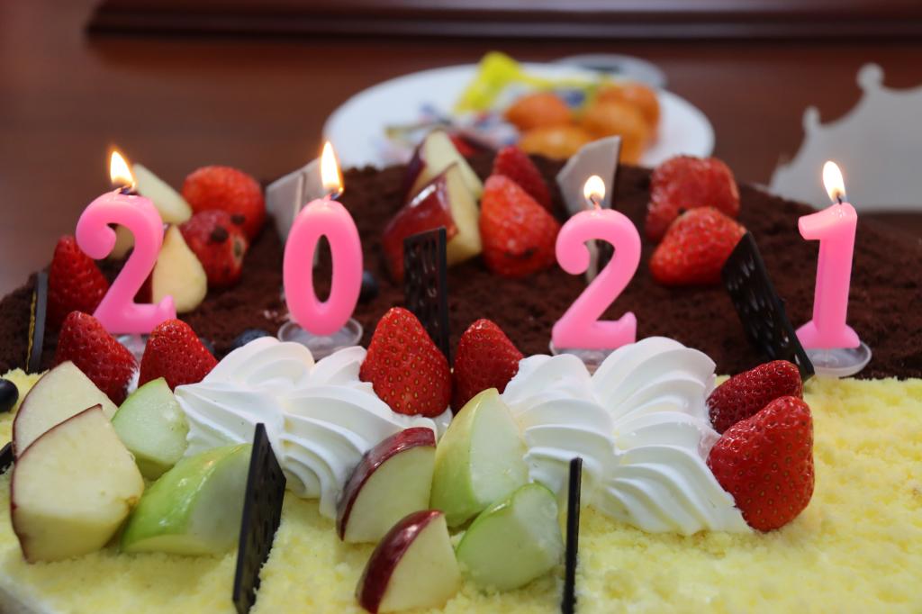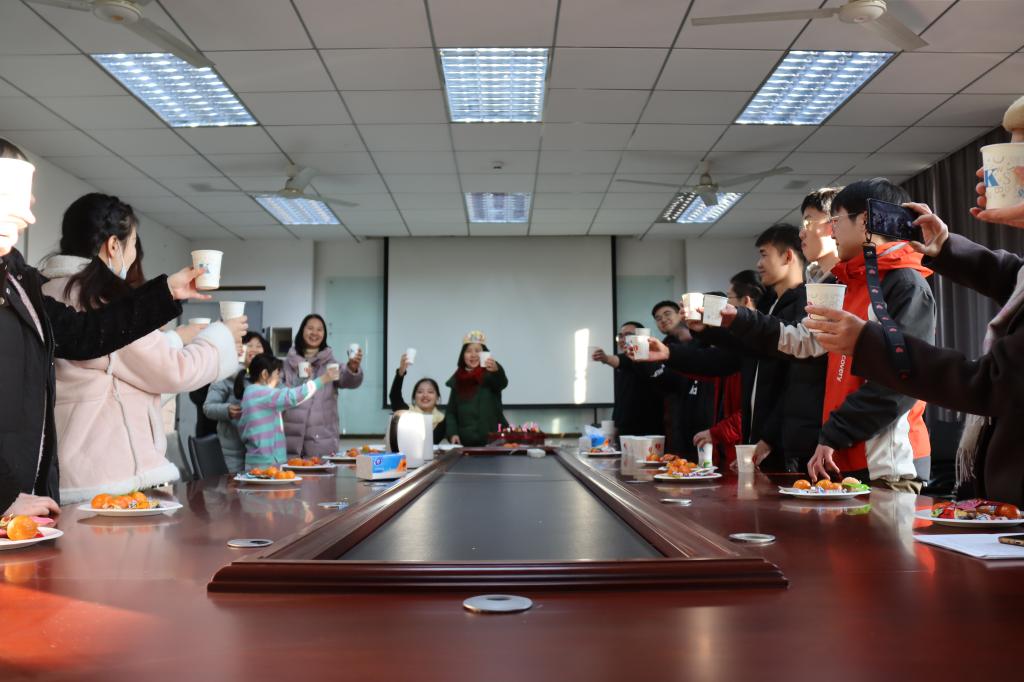 办公室朱晓老师在师生的生日歌中许下了新年心愿。